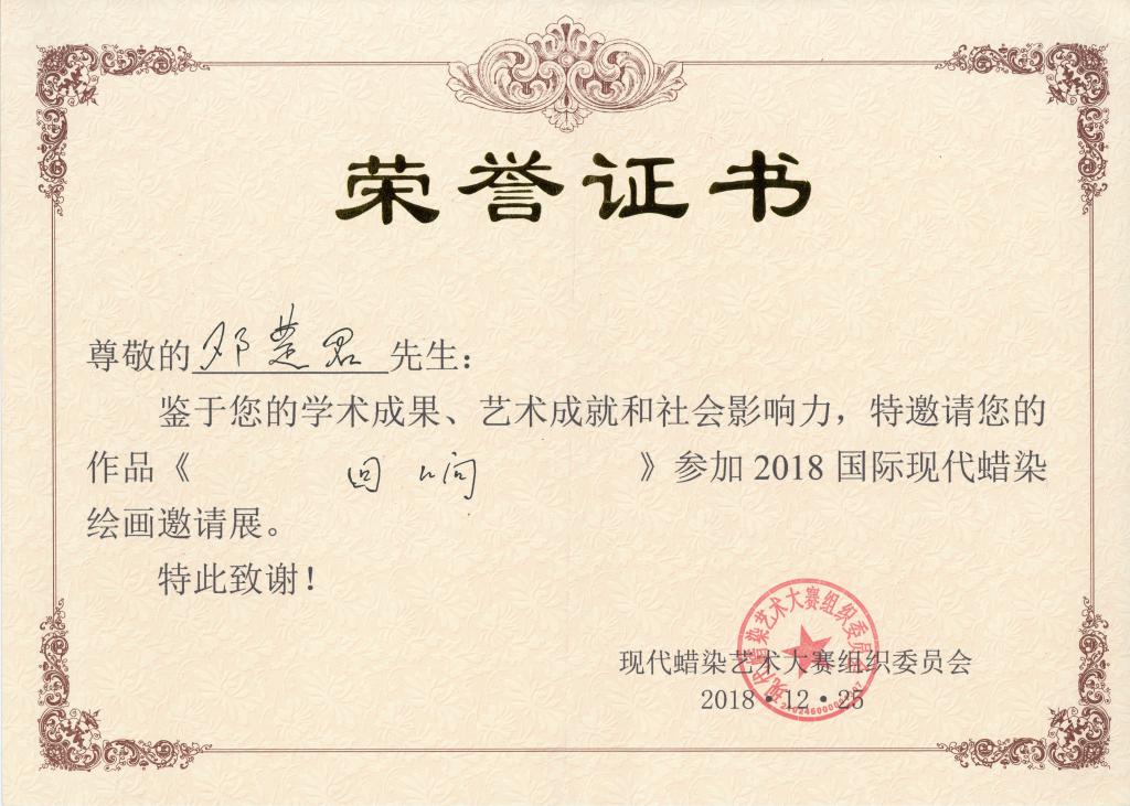 邓楚君院长参加蜡染绘画邀请展荣誉证书